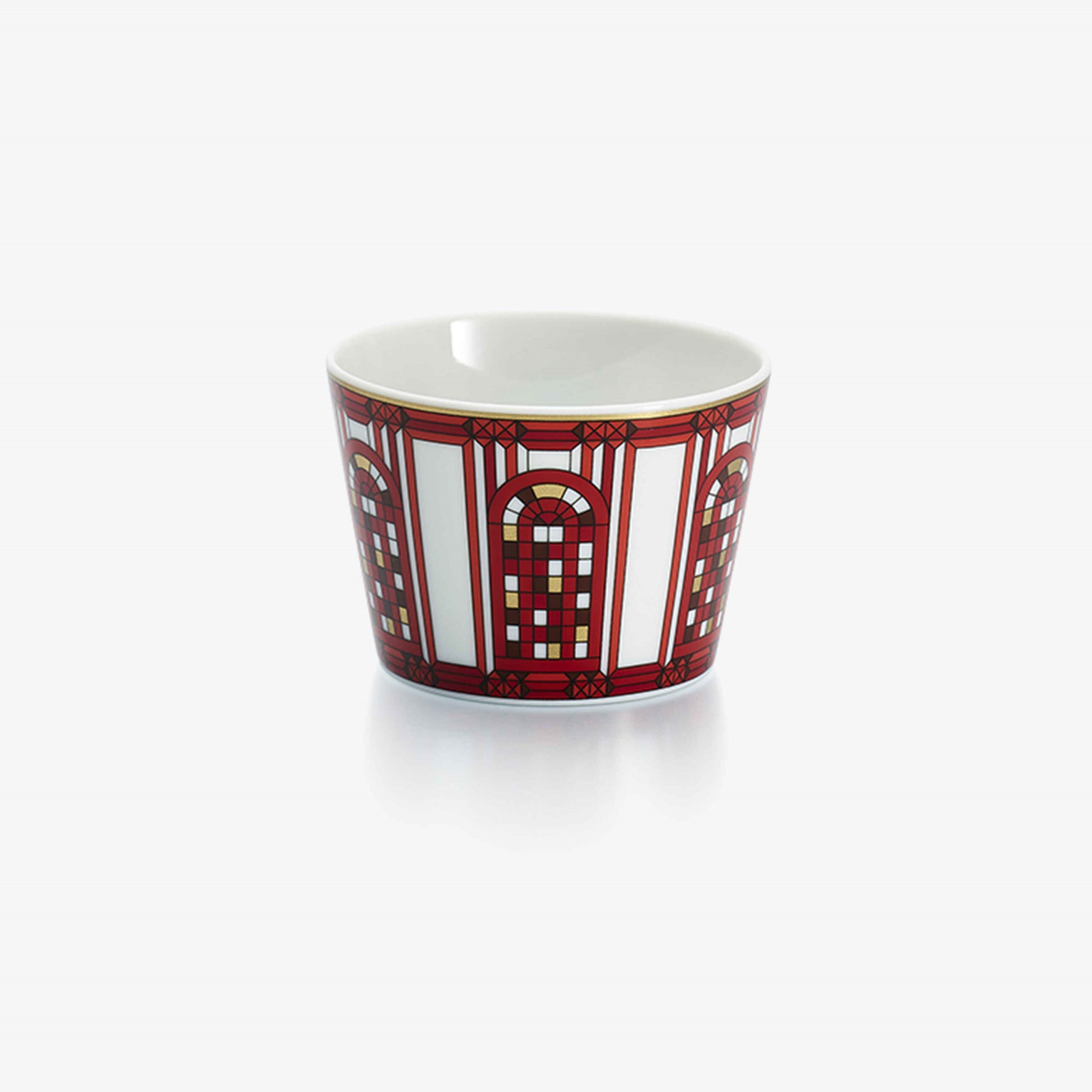 Die Kollektion Arcadia Rot ist ein Porzellanservice, das aus vier Tellergrößen und einer „Timbale“ besteht. Das schillernde weiße Porzellan mit dem Arcadia-Muster wird durch das für Baccarat typische Rot und kostbare Goldtöne veredelt. Als Ode an die Lebensfreude harmoniert das Service Arcadia Rot mit den Kristallkreationen von Baccarat und begleitet Momente des Teilens und Feierns. Arcadia ist das Muster, das von den gewölbten Fenstern der Baccarat-Manufaktur inspiriert ist. Es zelebriert das, was sich dahinter abspielt, wo seit Generationen leidenschaftliche Kunsthandwerker herausragende Meisterwerke schaffen, um die Welt zu verzaubern.
