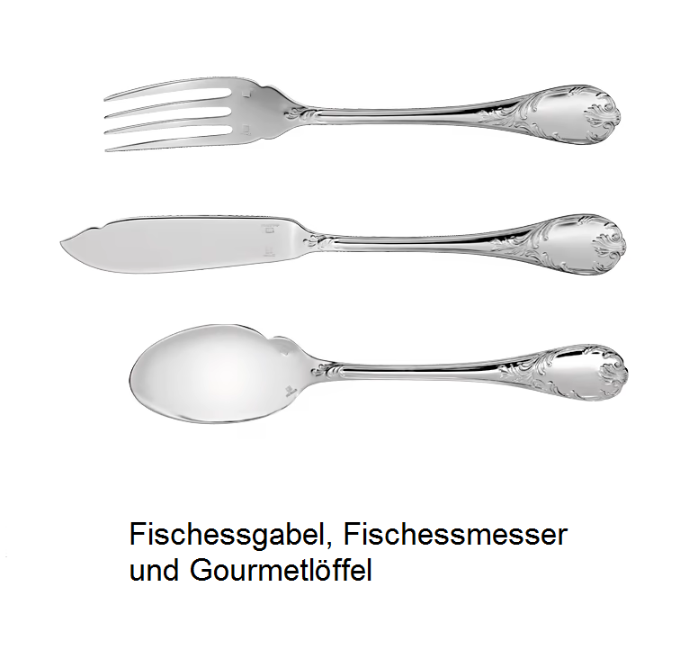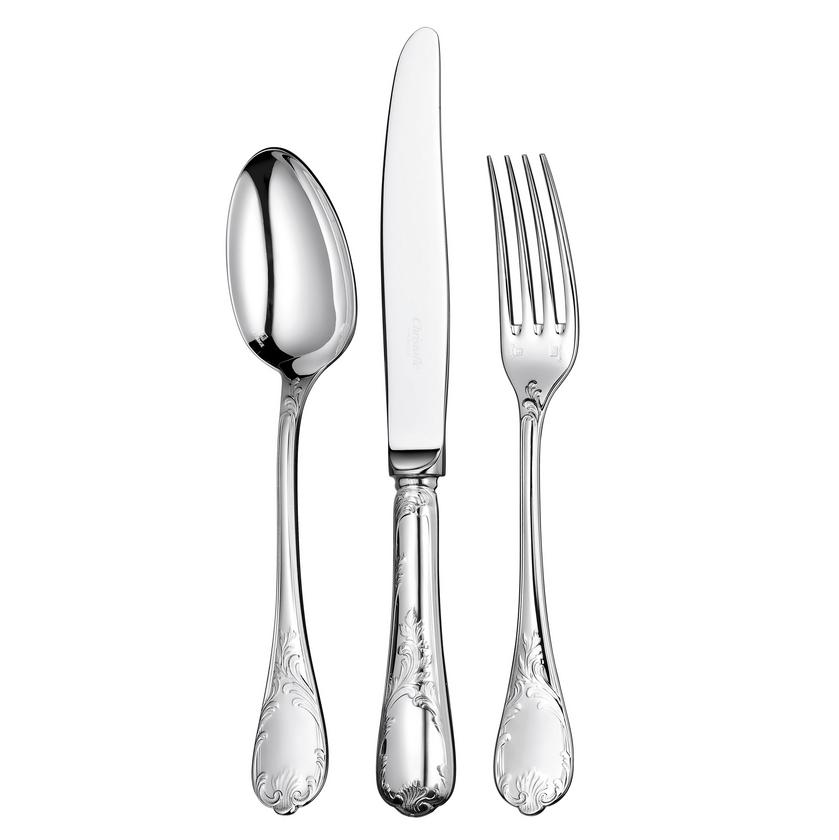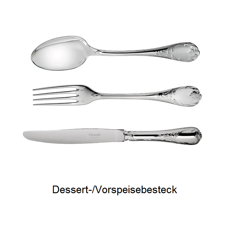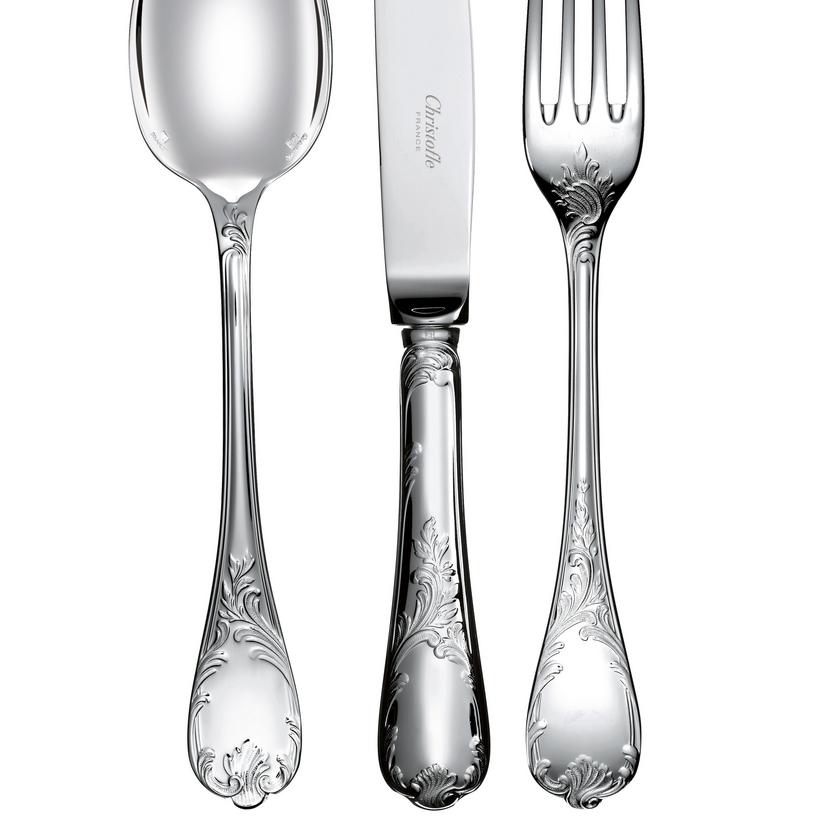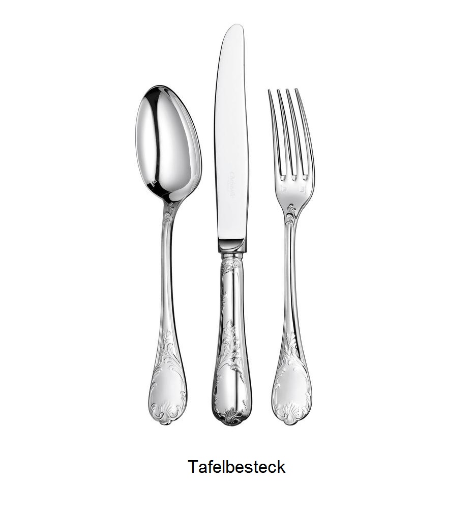 Luxuriöses Comeback: Stilmöbel sind en vogue und festliche Tafeln werden wieder im Louis- XV-Stil gedeckt. Zu diesem Trend passt das versilberte Besteck “Marly” von Christofle, ein Entwurf aus dem Jahr 1890. Das Modell ist nach dem Schloss Marly benannt, das in der Nähe von Paris von Ludwig XIV. als Jagd- und Sommerresidenz erbaut wurde. “Marly” ist das am reichsten mit Ornamenten geschmückte Modell der Christofle-Kollektion. Das typische Pflanzendekor des unter Ludwig XV. aufgekommenen Rocaille-Stils unterstreicht durch seine feine Ziselierung den Reichtum und das Raffinement einer Tafel “à la française”.