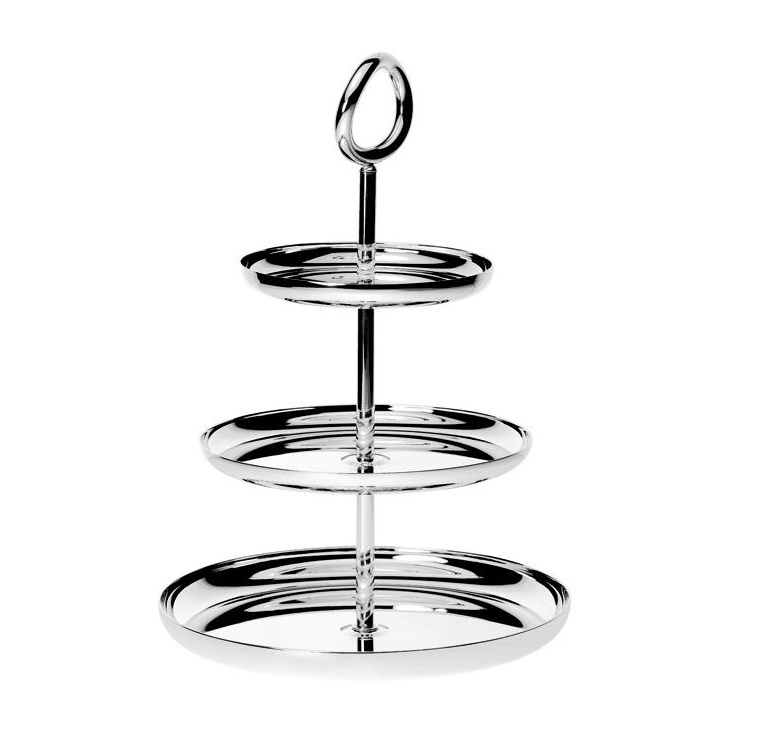 Andrée Putman hat ihre Erfolgsserie für Christofle um zwei weitere versilberte Prachtstücke erweitert: Die Etageren „Vertigo“ kredenzen höchst stilvoll Pralinen und Petits-Fours.