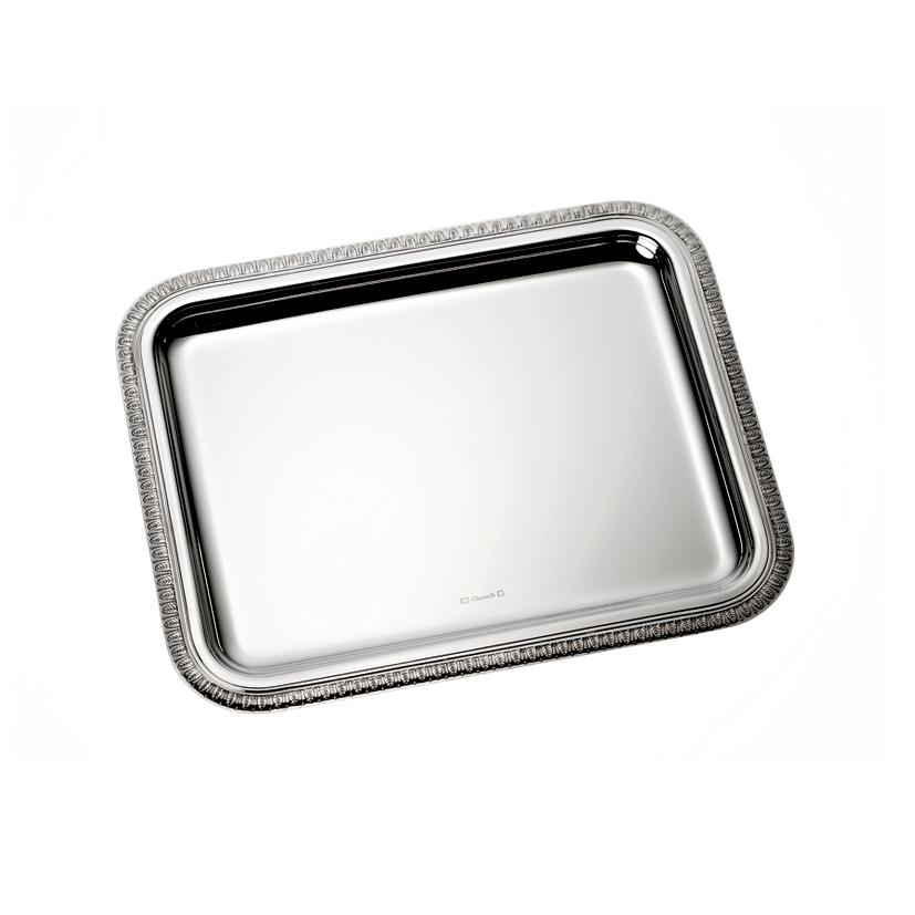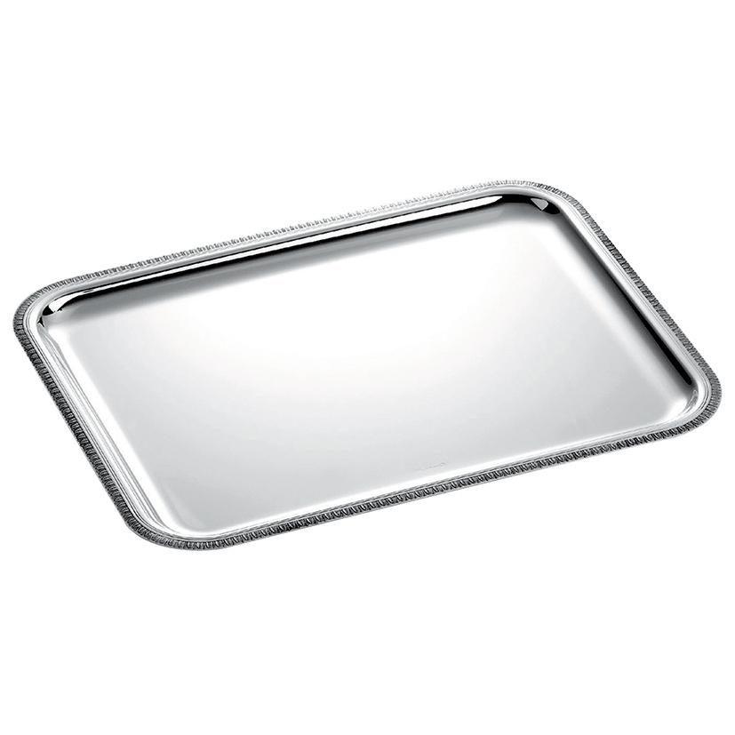Das Tablett “Malmaison” ohne Griffe von Christofle garantiert jederzeit einen eleganten Auftritt: Ob zum Menü, zum Dessert oder mit Champagnerflöten beladen. Die Serie “Malmaison” orientiert sich am französischen Empire-Stil des frühen 19. Jahrhunderts. Der wiederum zeichnet sich durch seine Begeisterung für Motive der Antike aus. Daher ziert die Tabletts ohne Griffe “Malmaison” ein Palmettenrand aus kleinen Palmwipfeln.