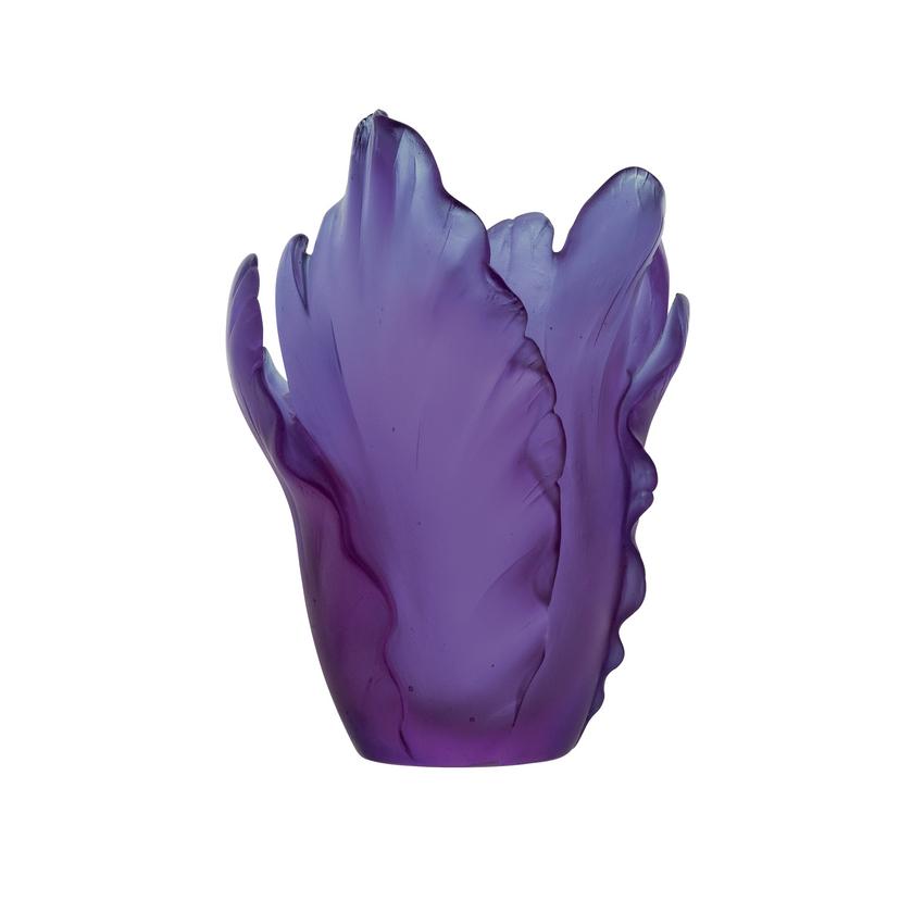 Die Vasen “Tulipe” von Daum recken sich wie eine frisch erblühte Tulpe gen Himmel. Ihre Form erinnert an sogenannte “Papageien-Tulpen”, die mit tief eingeschnittenen und leicht gewellten Blütenblatträndern faszinieren. Die einzelnen Blätter der “Tulipe”-Vasen von Daum fächern sich zu einer leicht geöffneten Vase auf.