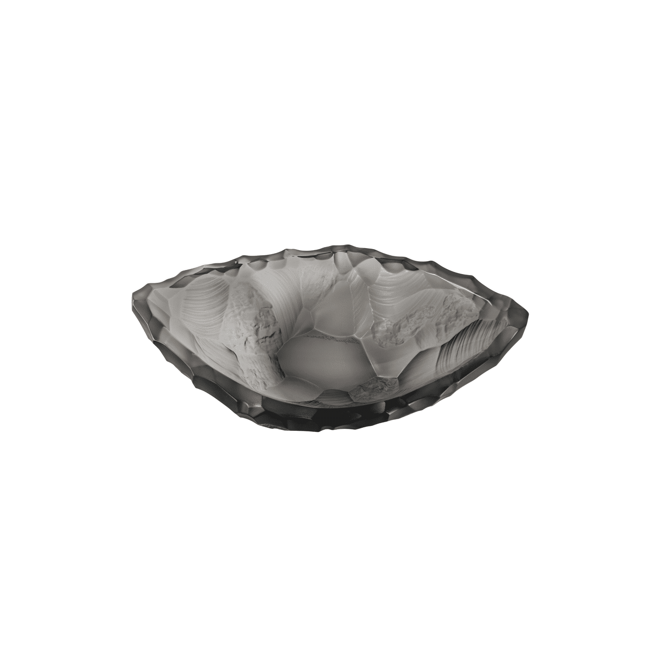 Durch Vasen und Schalen überträgt Lalique die rohe Eleganz des Silex in raffinierte Kreationen. Das satinierte, anschließend polierte Kristallglas, das in verschiedenen Ausführungen bearbeitet wurde, spielt mit Kontrasten, Reflexen und Licht. Jedes Stück ist eine Hommage an das lebendige Gedächtnis der Erde – zwischen Stärke und Poesie.