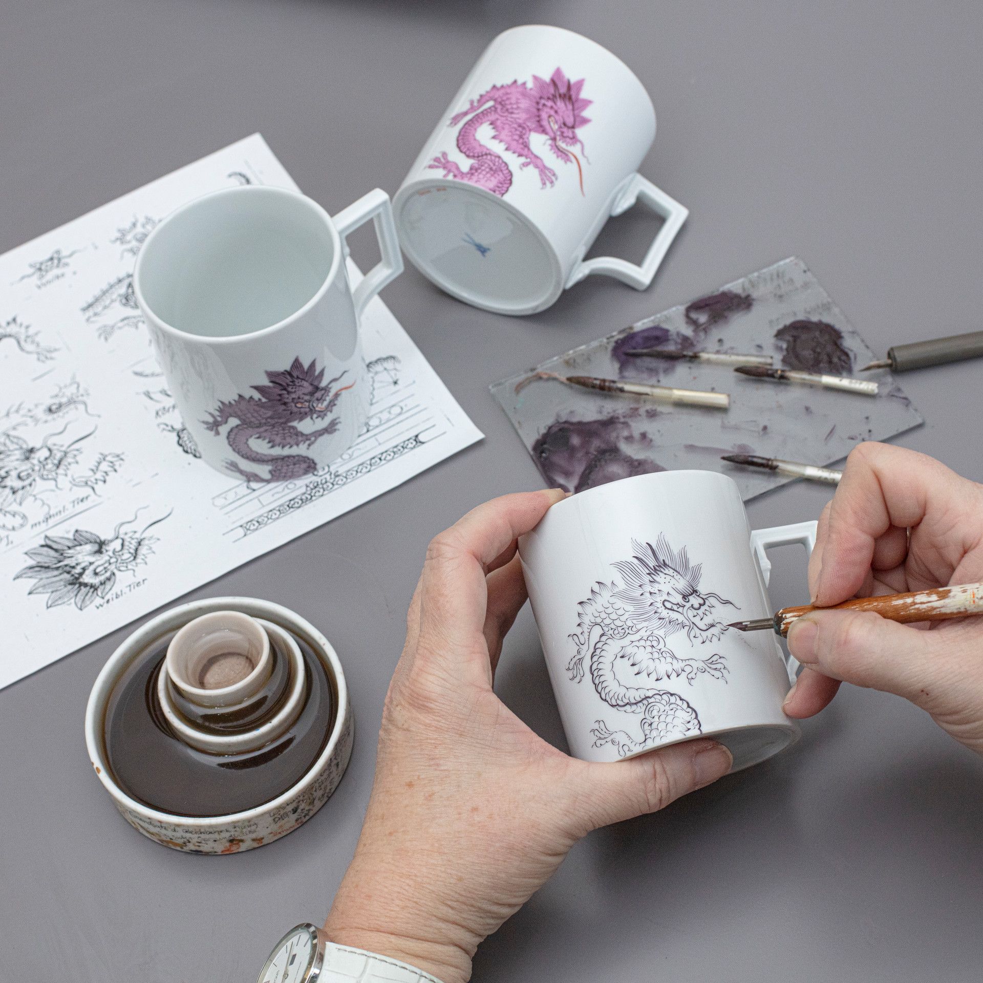 Den Becher „Ming Dragon Purple“ ziert auf der Form „Berlin“ eines der ältesten Motive der Manufaktur. Symbolisch steht der Drache für den Geist der Veränderung, was nicht zuletzt durch die vielfältige Umsetzung der Dekoration in acht bezaubernden Farbvariationen belegt wird. Der ikonische „Ming-Drache“ entstand bereits in der ersten Hälfte des 18. Jahrhunderts.