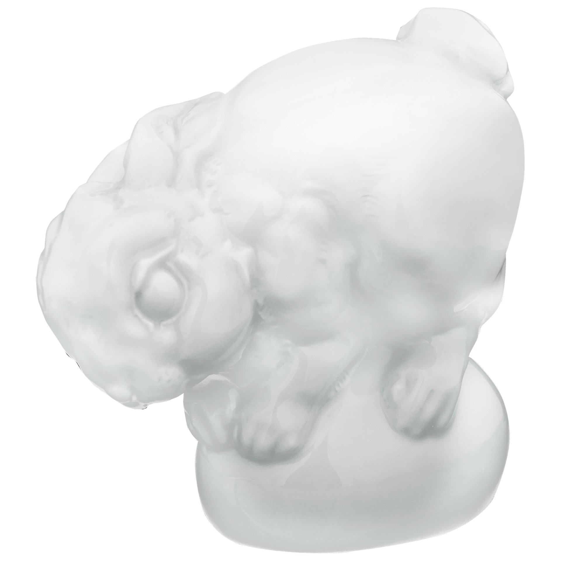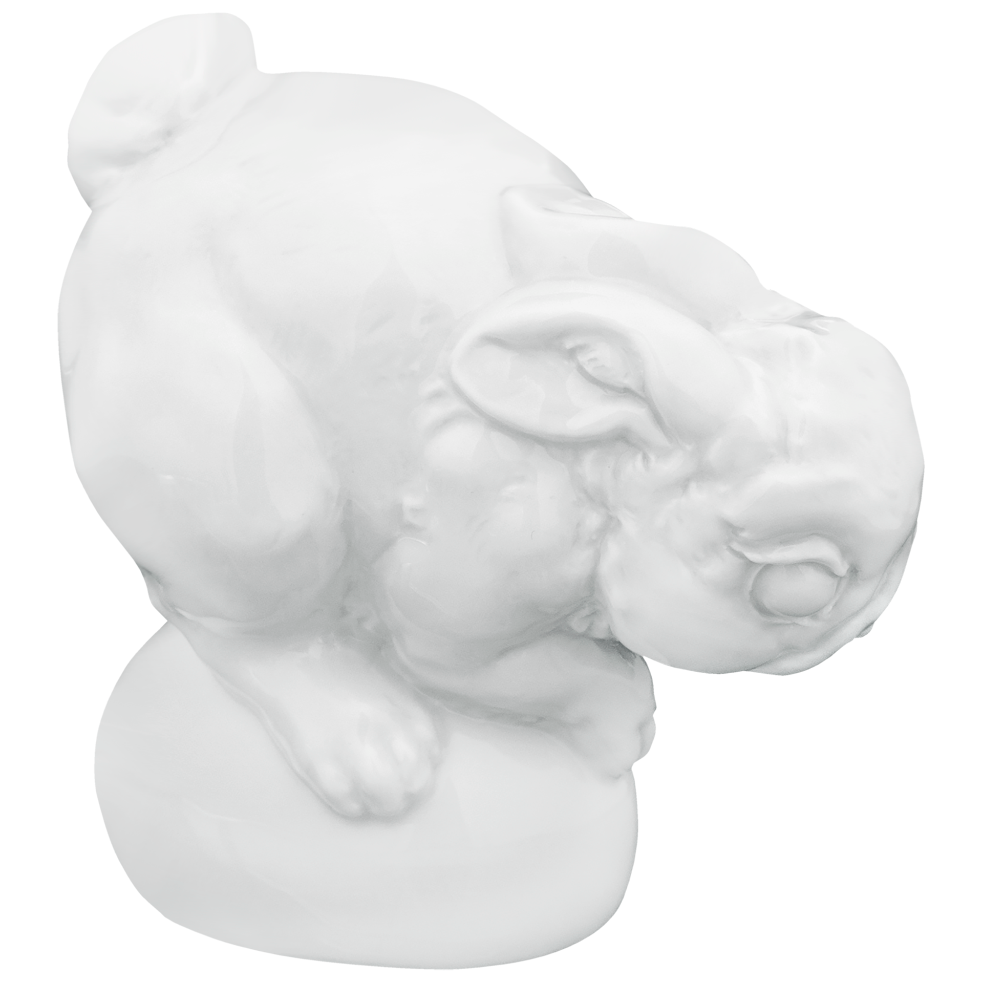 In stilisiert verniedlichter Form tritt uns der Hase Benno entgegen und löst sich damit ganz unbefangen von der langen Tradition naturalistischer Tierdarstellungen bei MEISSEN. Detailreich ausgearbeitete Konturen bringen dabei das strahlende Weiß des Meissener Porzellans effektvoll zur Geltung. Unbekümmert, als ob etwas suchend dargestellt fängt die Plastik einen Moment faszinierender Lebendigkeit in Porzellan. Aus ihm spricht der lieblich-kindliche Charakter der Figur.