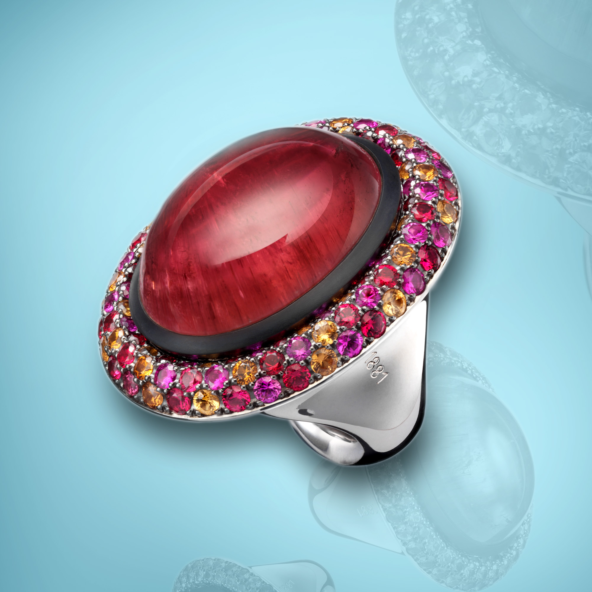 Geheimnisvoller und farbintensiver Ring für eine starke Frau. Der Ring hat eine anziehende und auffällige Ausstrahlung.