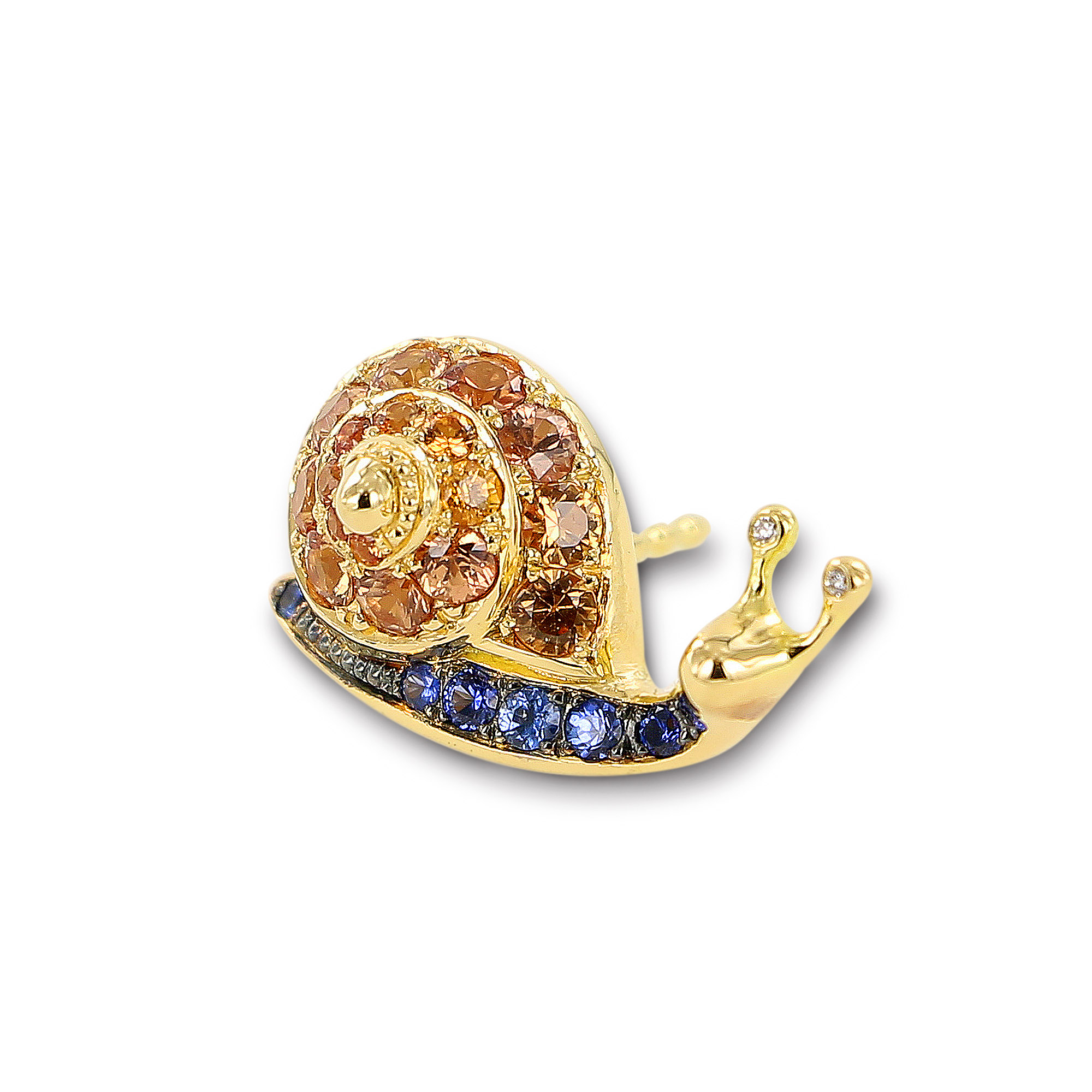 «Take it easy!», sagt die hübsche, feingearbeitete Schnecke mit farblich aufeinander abgestimmten Saphiren.