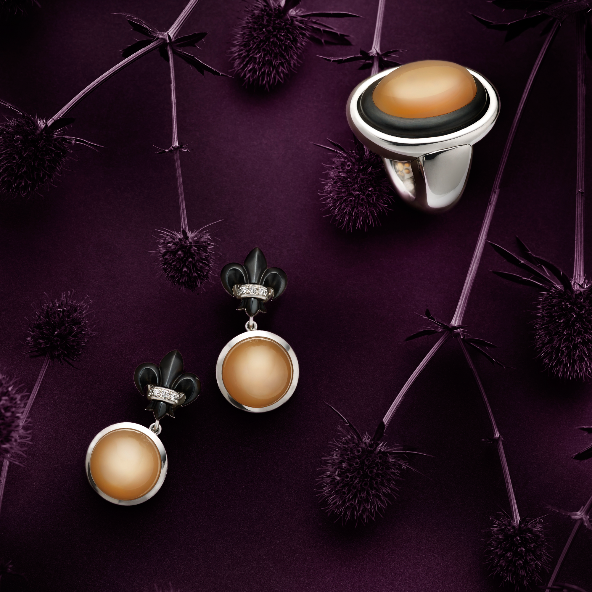 Meister 1881 CollectionRing und OhrhängerclipsMondstein-Cabochon