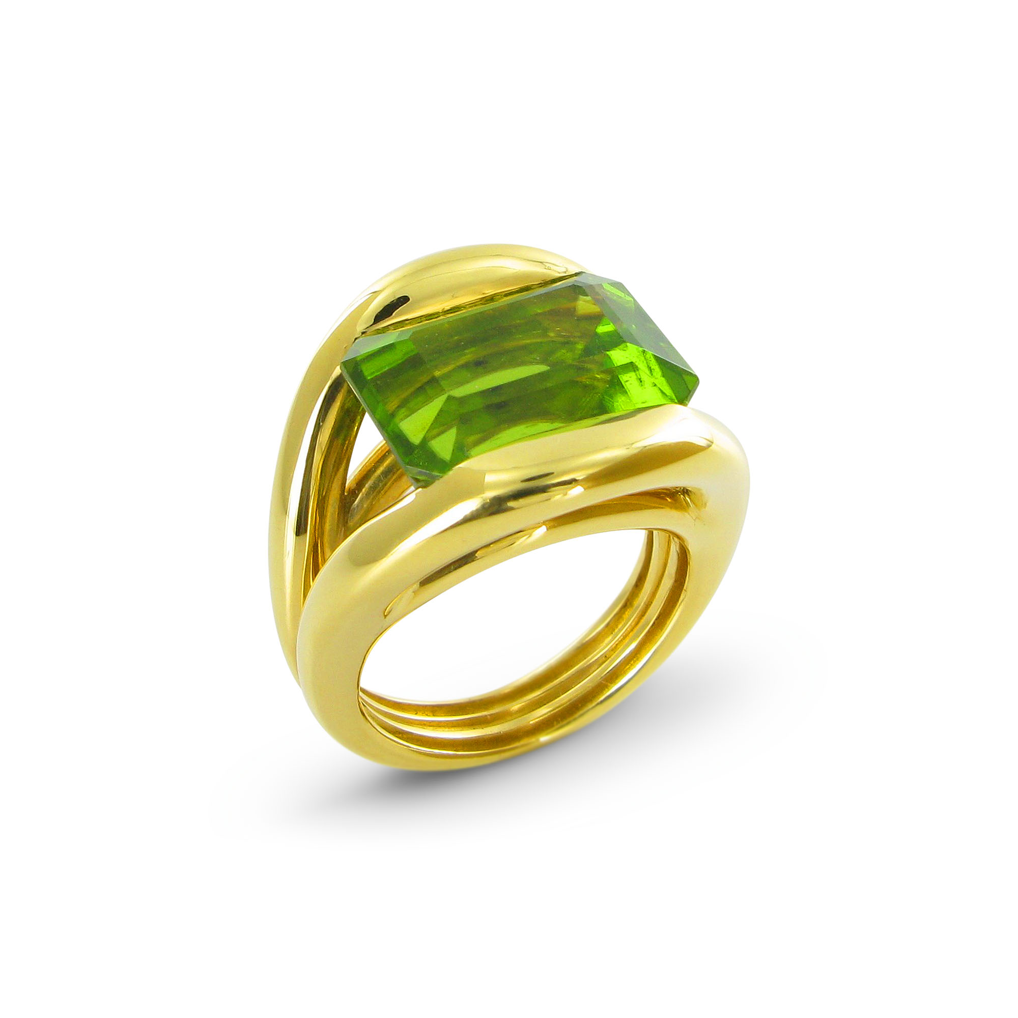 - 1 olivfarbener Peridot 13.26 ct, Treppenschliff, 14.9 x 11.1 x 9.2 mm