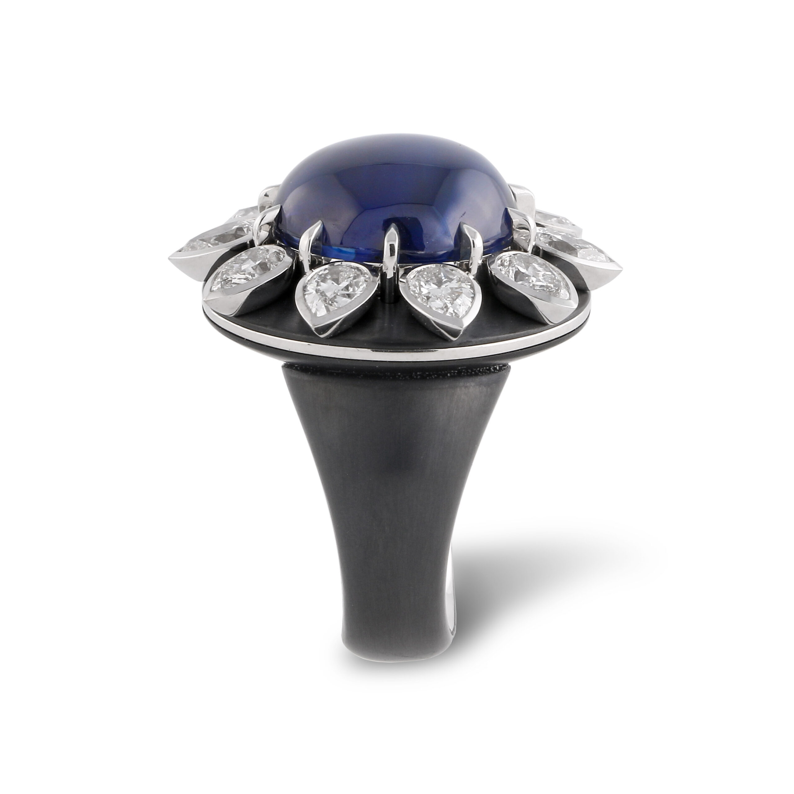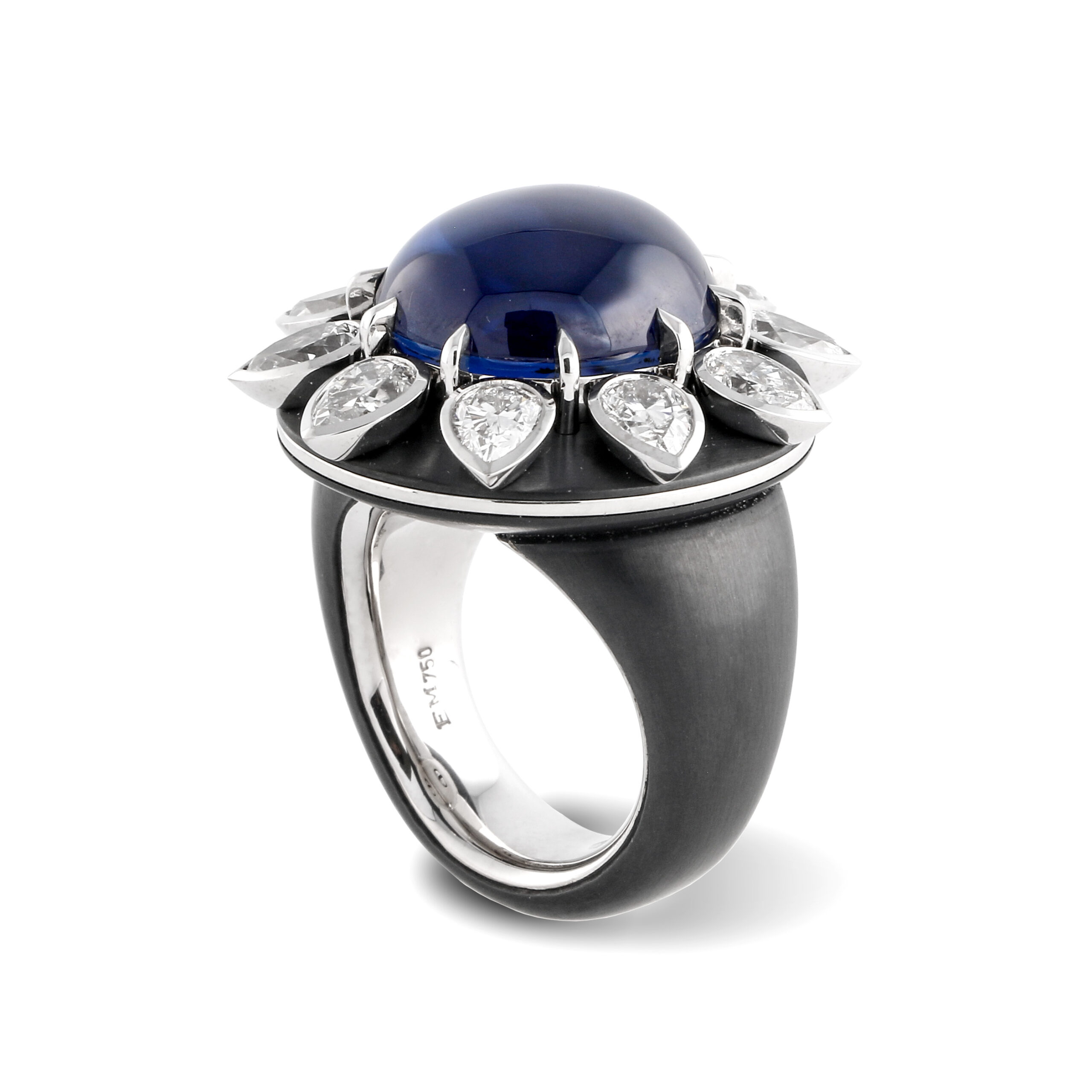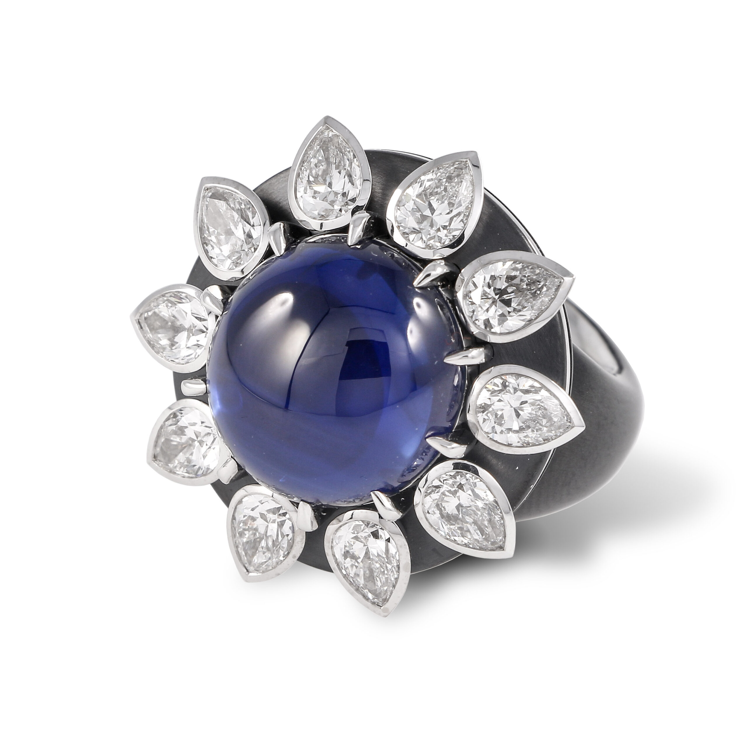 - 1 Saphir-Cabochon 23.09 ct, naturbelassen, 15.82 x 14.95 x 9.76 mm, SSEF Report-Nr. 137213