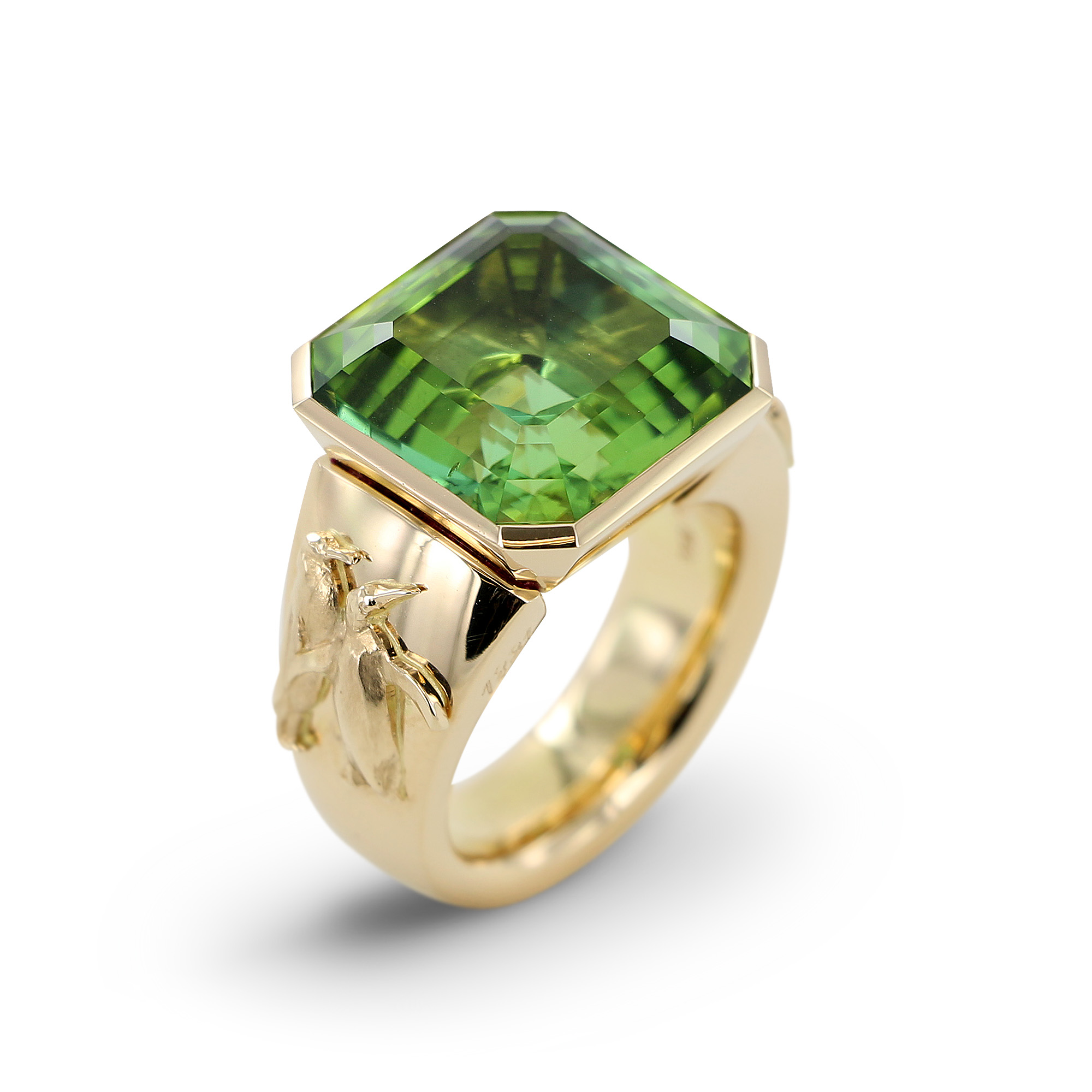 - 1 grüner Turmalin Asscher-Cut 16.80 ct, 15.00 x 15.10 x 10.50 mm