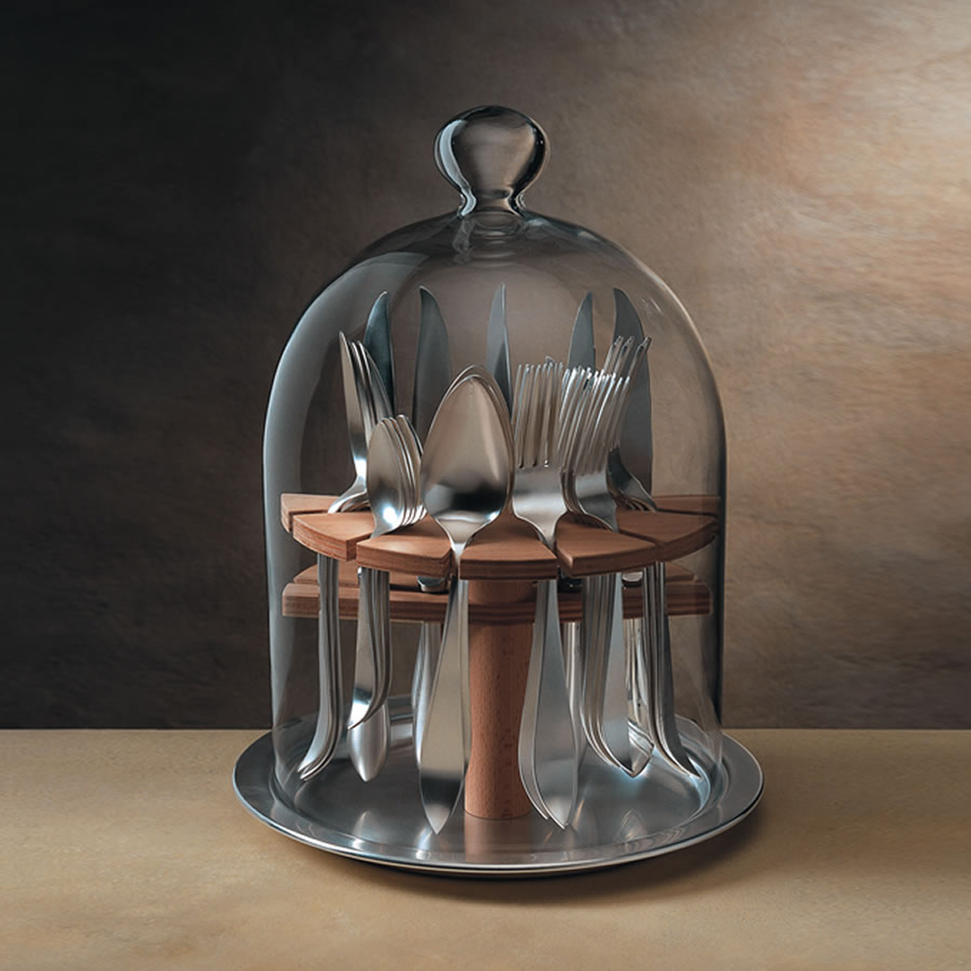 Gianfranco Pampaloni, der Enkel des Firmengründers, wuchs in der Familienwohnung über der 1902 gegründeten Fabrik auf und erlebte die Verwandlung von Rohsilber in Objekte mit den undenkbarsten Formen von Kindsbeinen an. Die auf Silber bezogenen Begriffe – Seltenheit, Exklusivität, Kostbarkeit – waren ihm fremd. Frei von vorgefassten Ideen, ist der heutige Chef immer bereit, innovative Ansätze zu prüfen und neue Formen und Themen zu erkunden. Pampaloni ist kein Handwerker, sondern ein Künstler.