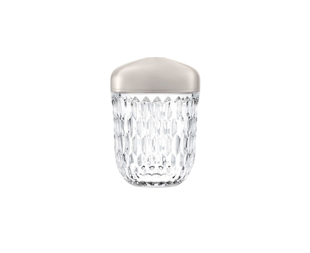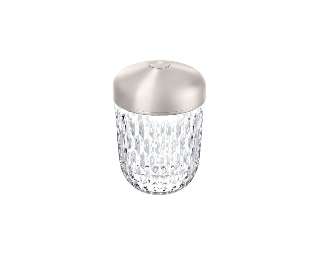 Die Mini-Version der Handleuchte gibt es in drei Ausführungen: ein leichtes Gold, ein dezentes Kupfer und ein warmes Silber. Drei Farben, die in Harmonie miteinander gedacht sind und zu jeder Einrichtung passen. Sie ist wiederaufladbar und verfügt über zwei Lichttemperaturen und eine Palette von drei Intensitäten, die sich je nach Stimmung und Gebrauch dimmen lassen.