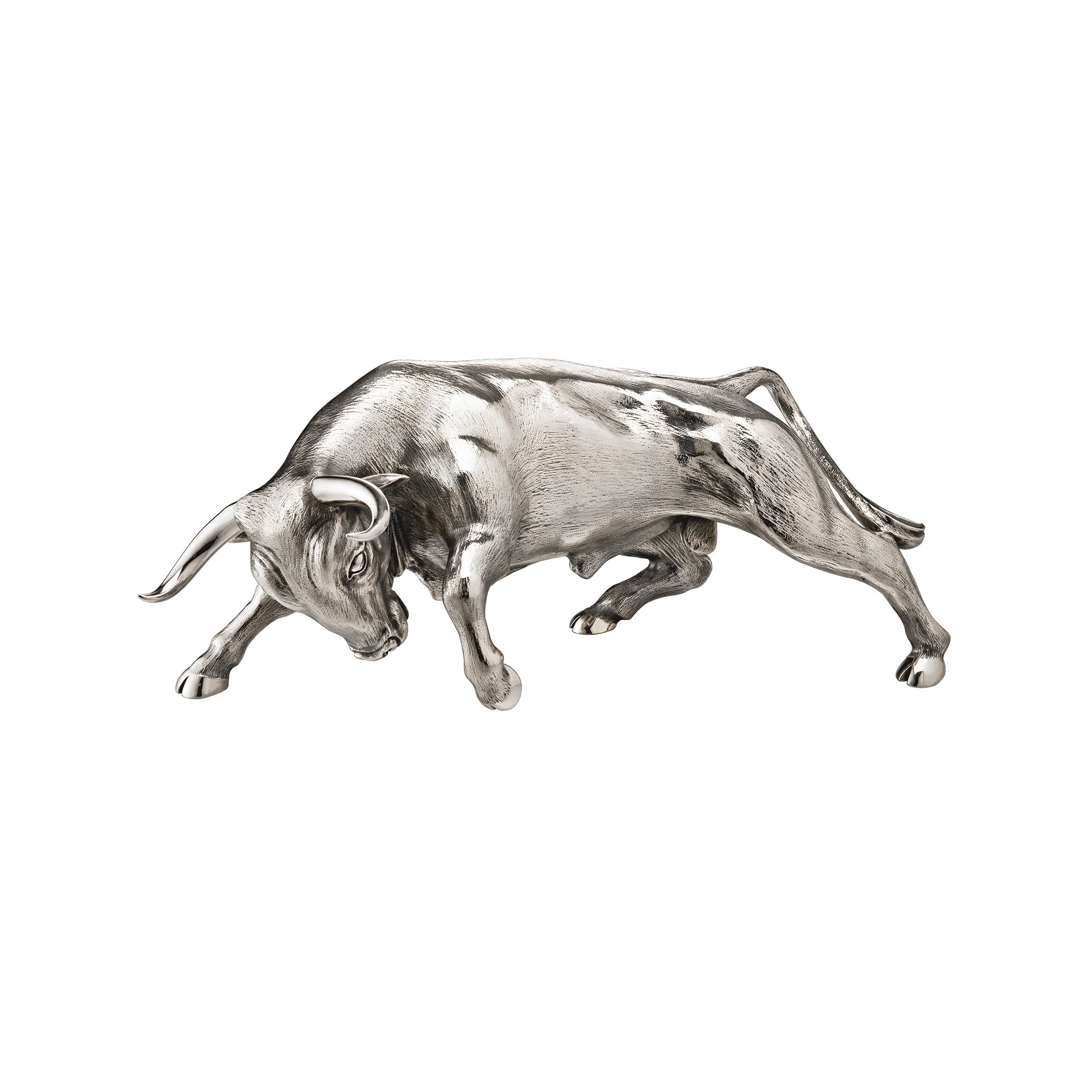 Die beiden handgefertigten Stiere aus der Meister 1881 Collection wurde aus massivem Sterlingsilber in unserem eigenen Atelier in Zürich gefertigt. Viel Wert wurde in die Ausarbeitung feinster Details gelegt, so wirkt der muskelöse Körper dynamisch, elegant und kraftvoll.