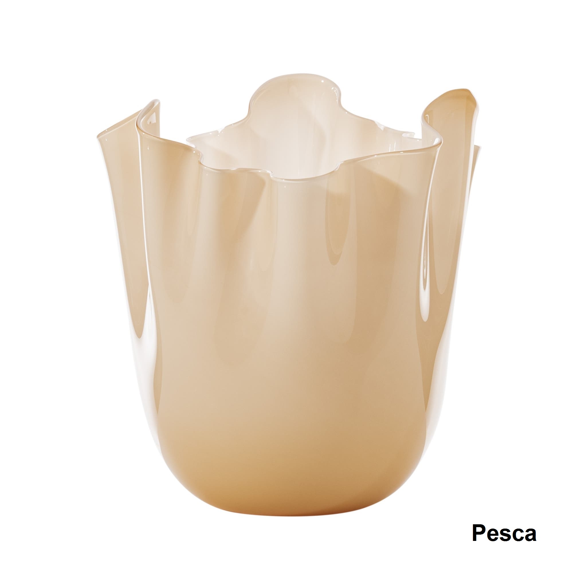 Die Fertigung einer Vase “Fazzoletti Opalino” verlangt von den Venini Glasbläsern besonders viel Kunstfertigkeit und Feingefühl. Wenn der Glasmeister eine Glaskugel geblasen hat, schneidet er diese auf. Durch geschickte Schleuderbewegungen ergibt sich die Form der Vase, welche an ein aufgestelltes Taschentuch erinnert. Daher stammt auch der Name: “Fazzoletto” bedeutet aus dem italienischen übersetzt Taschentuch. Jede Vase von Venini ist ein handgefertigtes Unikat und besitzt eine individuelle Form.