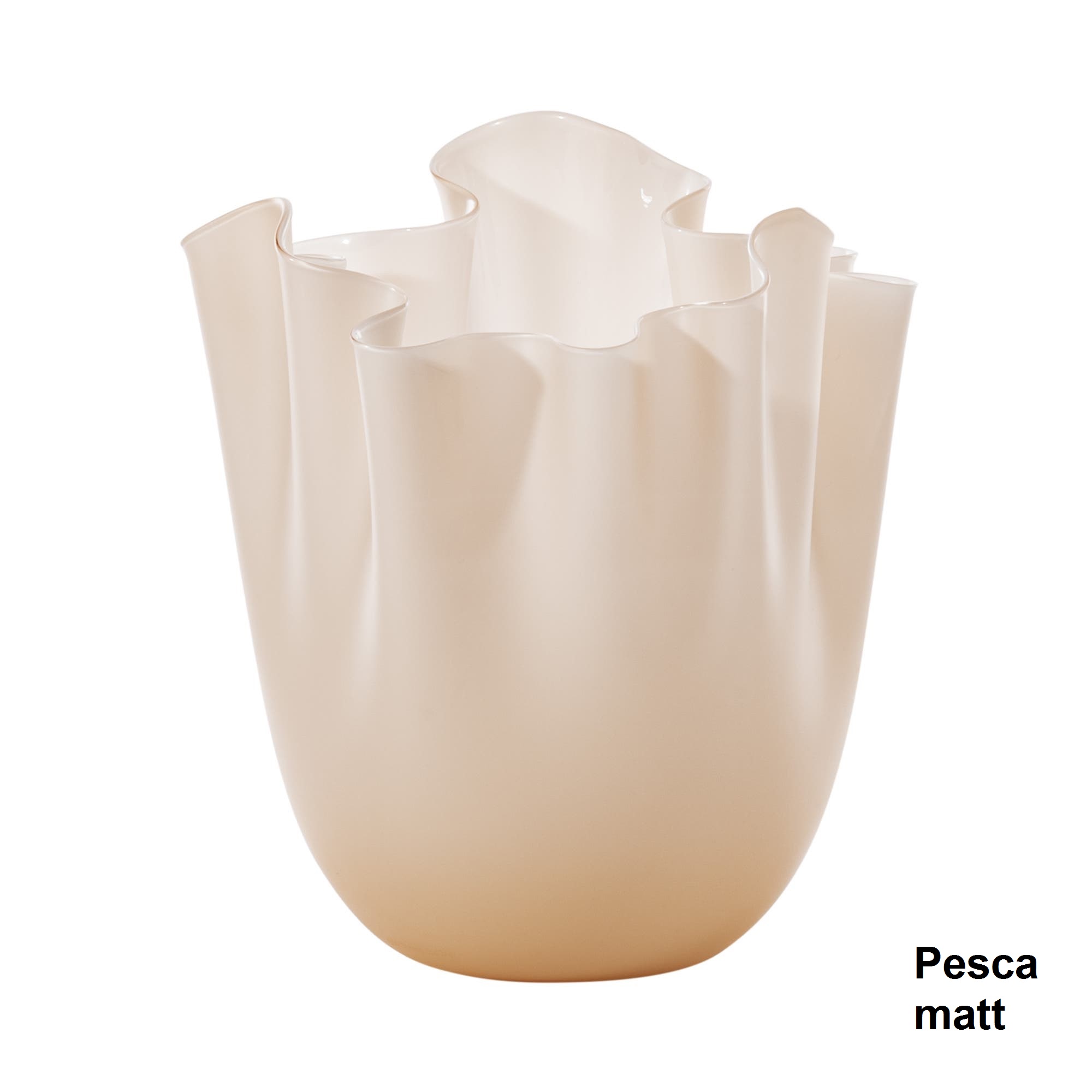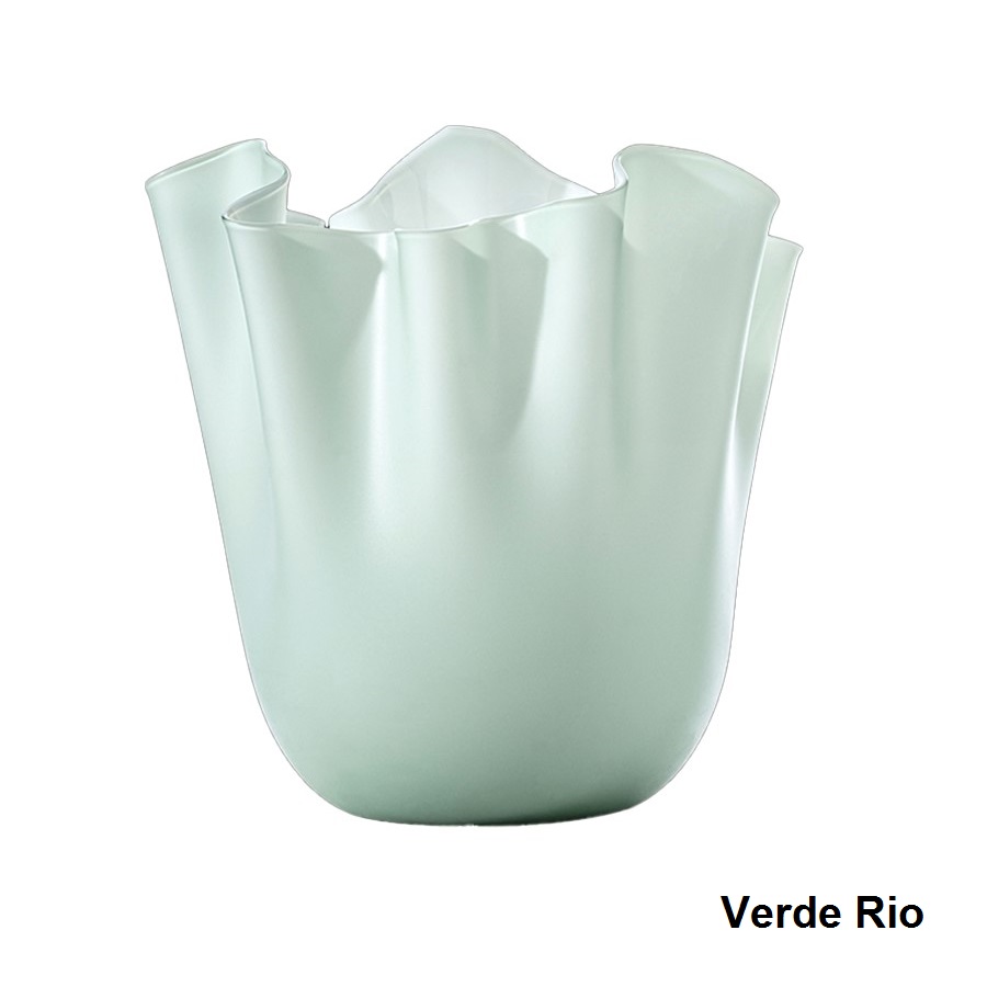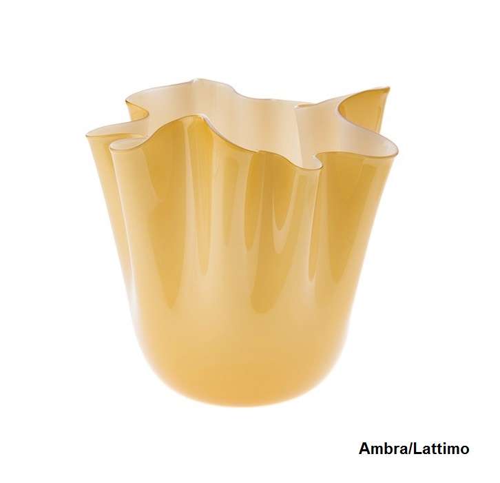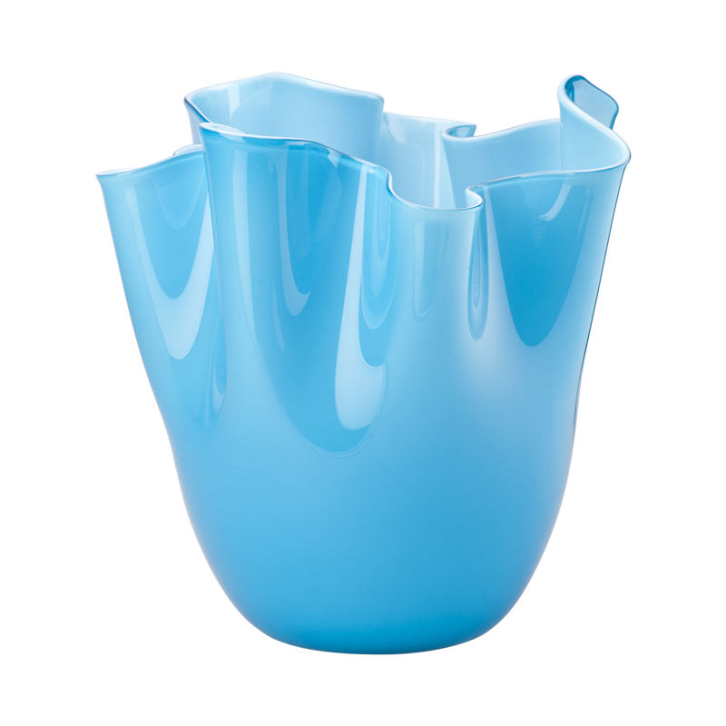 Die Fertigung einer Vase “Fazzoletti Opalino” verlangt von den Venini Glasbläsern besonders viel Kunstfertigkeit und Feingefühl. Wenn der Glasmeister eine Glaskugel geblasen hat, schneidet er diese auf. Durch geschickte Schleuderbewegungen ergibt sich die Form der Vase, welche an ein aufgestelltes Taschentuch erinnert. Daher stammt auch der Name: “Fazzoletto” bedeutet aus dem italienischen übersetzt Taschentuch. Jede Vase von Venini ist ein handgefertigtes Unikat und besitzt eine individuelle Form.